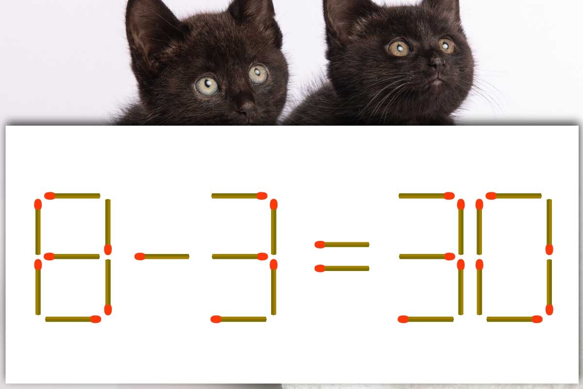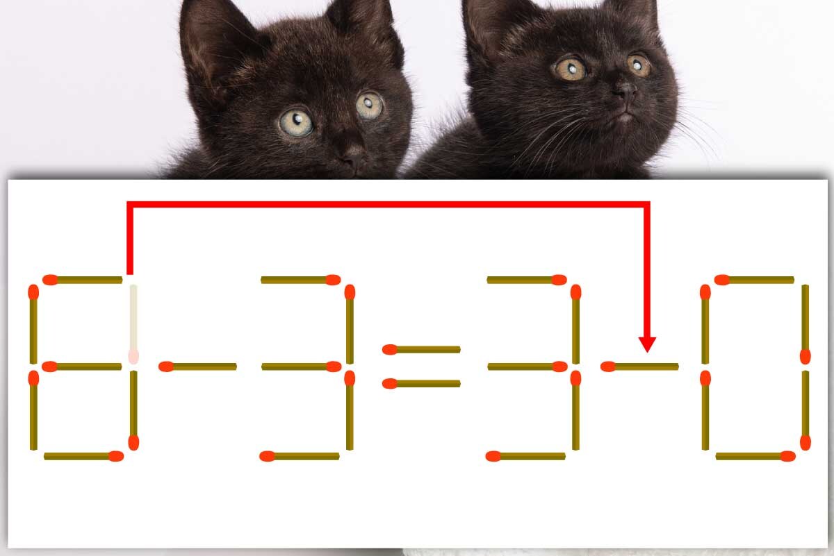 「8」の右上のマッチ棒を横向きに回転させ、「3」と「0」の間に入れ、「6-3=3-0」にする。※解答は複数ある場合があります。