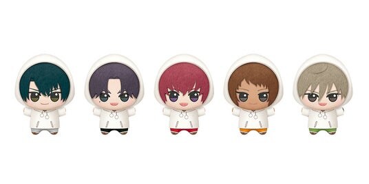 「越前リョーマ」、「跡部景吾」、「丸井ブン太」、「甲斐裕次郎」、「白石蔵ノ介」の冬をテーマにした描きおろし衣装を着用した「ちびぐるみ」。