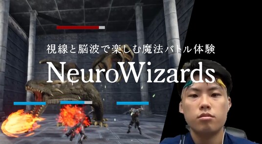 本作品は、視線入力と脳波を組み合わせた新しいゲーム体験です。敵への対象カーソルを目の動きで直感的に操作し、さらに脳波の状態に応じて魔法の種類や強さが変化します。