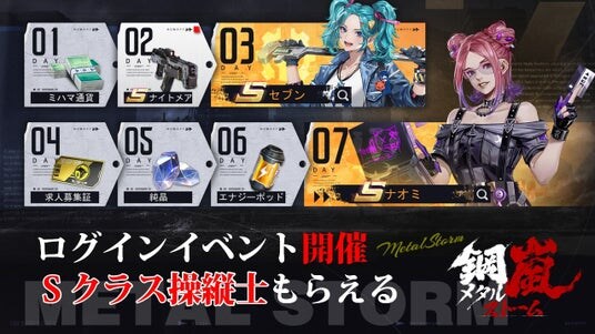 ログイン後、【七日ログイン】イベント内で毎日1つ補給が解除されます。Sクラス操縦士「セブン」「ナオミ」,Sクラス武器「ナイトメア」などの貴重な補給が合計7つ手に入ります。