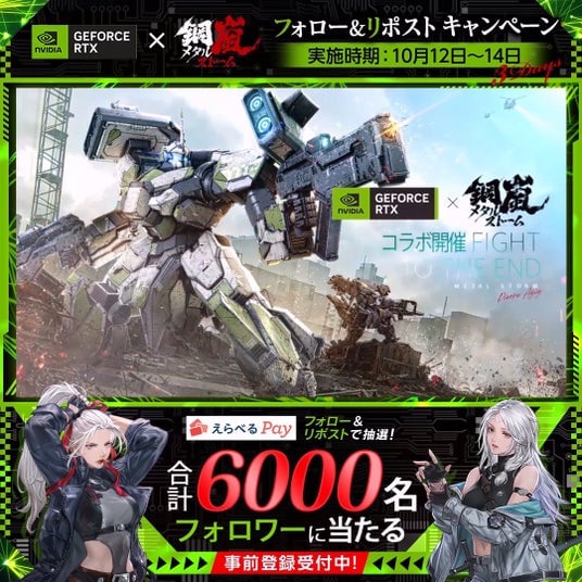 10月12日(土)から10月14日(月)までの期間中、公式Xアカウント(@metalstorm_pr)をフォローして対象の投稿をリポストすると、抽選で合計6000名