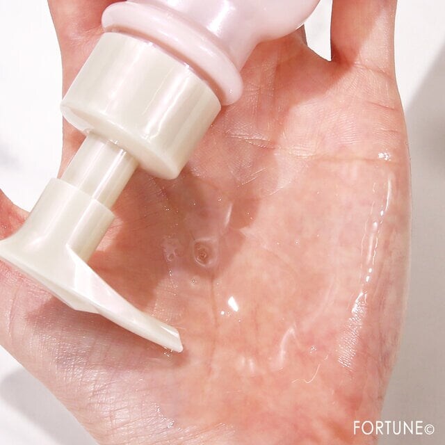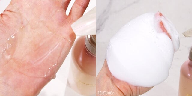 「リポアシャンプー サクラの香り」はとろみのあるテクスチャーで、きめ細かな泡が立ちます。