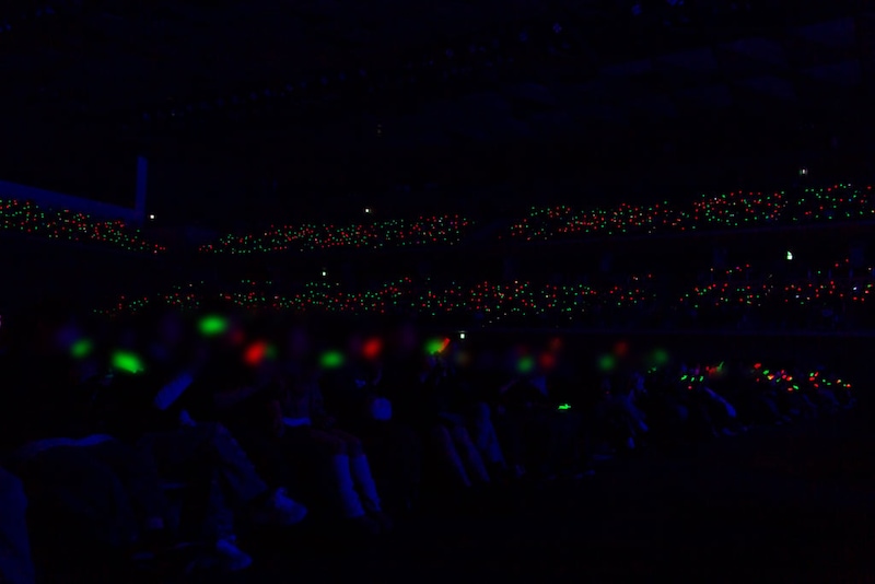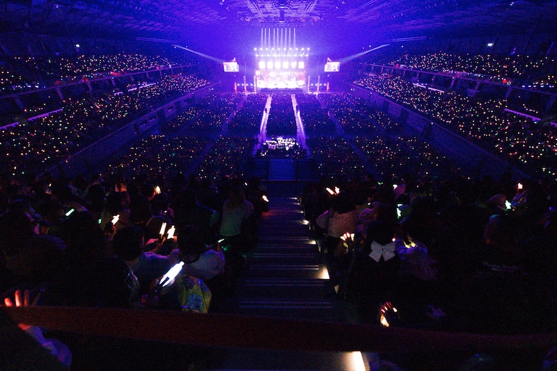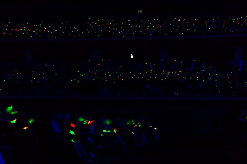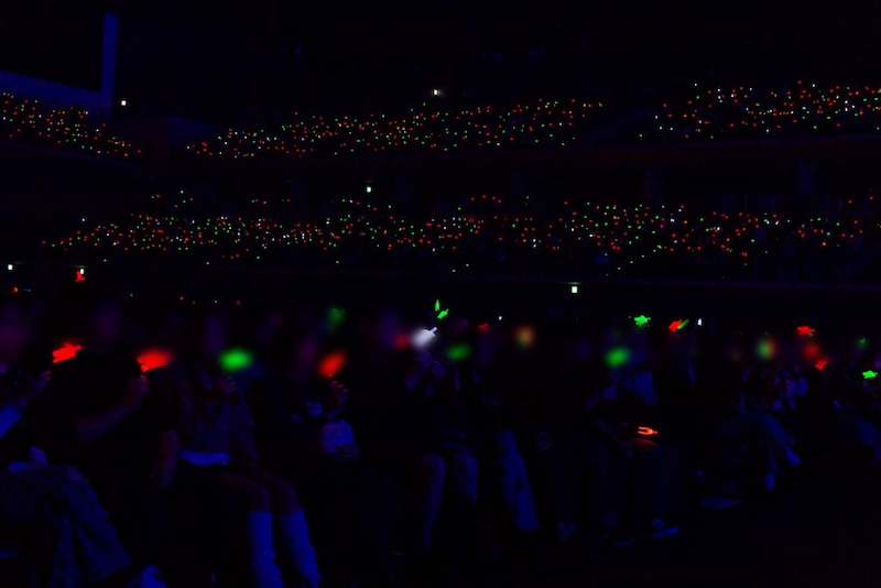 しかし意外と怖がらず、「3階席が俺より下にいるぜー!」と余裕ぶる。手を振るんそめに、観客もペンライトを黄色にして応えた。