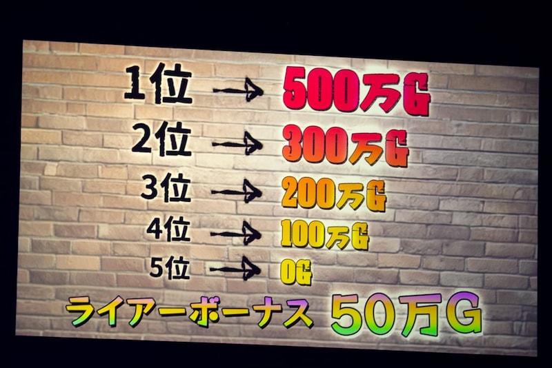 その後、カードを3枚出したげんぴょんにぐちつぼとたらこが二人で「ライアー!」宣言し、どちらも失敗して同時脱落するなどルール外の面白い局面も発生したが、最後に戦いを制したのはげんぴょんとなった。
