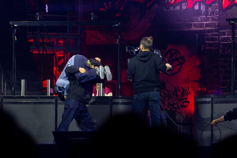 んそめ、焼きパン、たらこの三つ巴の戦いは、焼きパン、たらこの順で脱落し、んそめの勝利となったが、その間、脱落者のぐちつぼたちは「早くこっちにおいでー!」とステージの高いところから文字通り「高みの見物」を決めて会場を笑わせた。