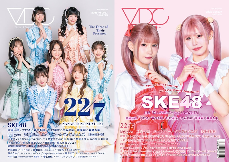 パフォーマンスに焦点を当て、アイドルの魅力を発信する複合メディア「VDC(Vocal & Dance Collection)」は、12月26日(金)発売の『VDC Magazine 037』にて、『22/7』と『SKE48』の特集掲載を発表した。限定生写真がもらえる予約特典も要チェック!