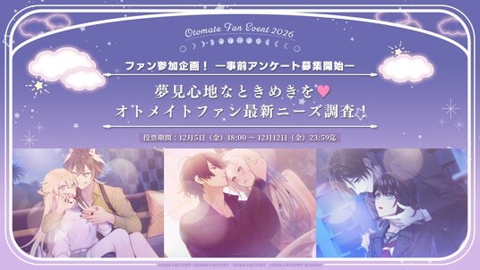 アイディアファクトリー株式会社(代表取締役社長:佐藤 嘉晃/所在地:東京都豊島区)の女性向けゲームブランド「オトメイト」は、2026年2月15日(日)開催予定のオトメイトファンイベント「Dessert de Otomate 2026」内のコーナーのひとつ「ファン参加企画」の回答受付を本日より開始いたしました。