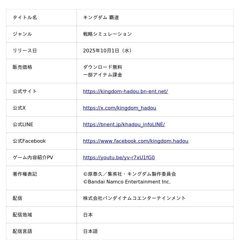 ■「キングダム 覇道」の配信日が2025年10月1日(水)に決定!