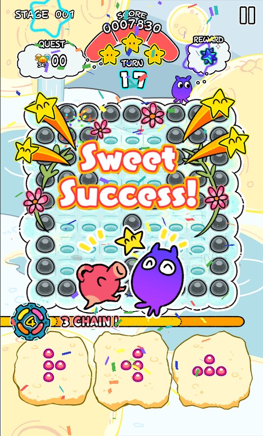 盤面にブロックを置き、タテヨコにラインを作ったりシカクにボックスを作ったりしてステージミッションをクリアしましょう。