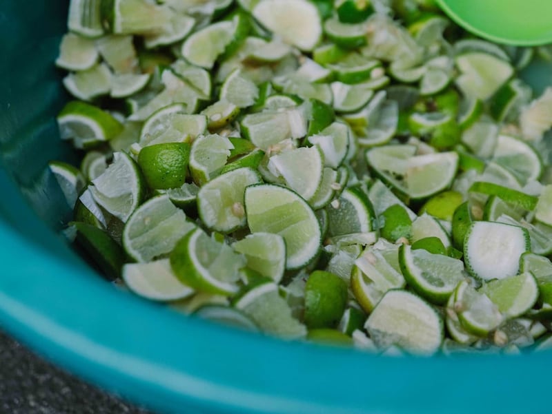 ライムを一つひとつカットする様子