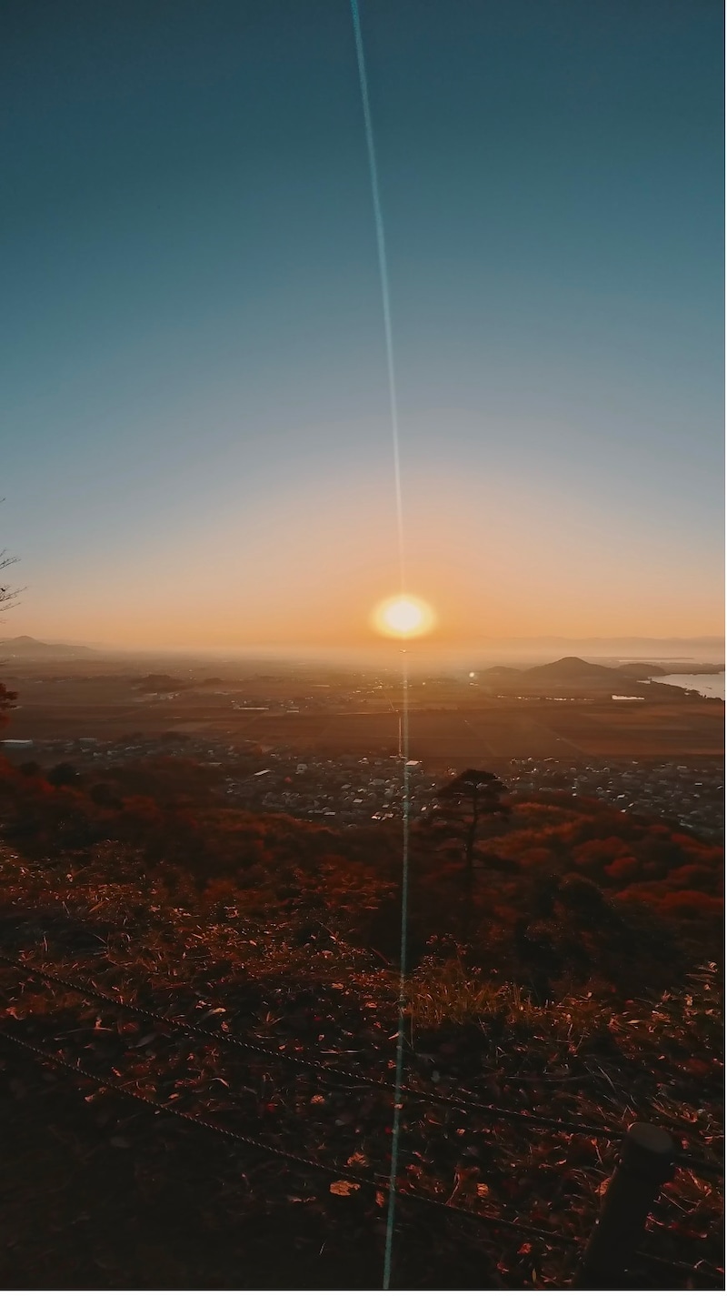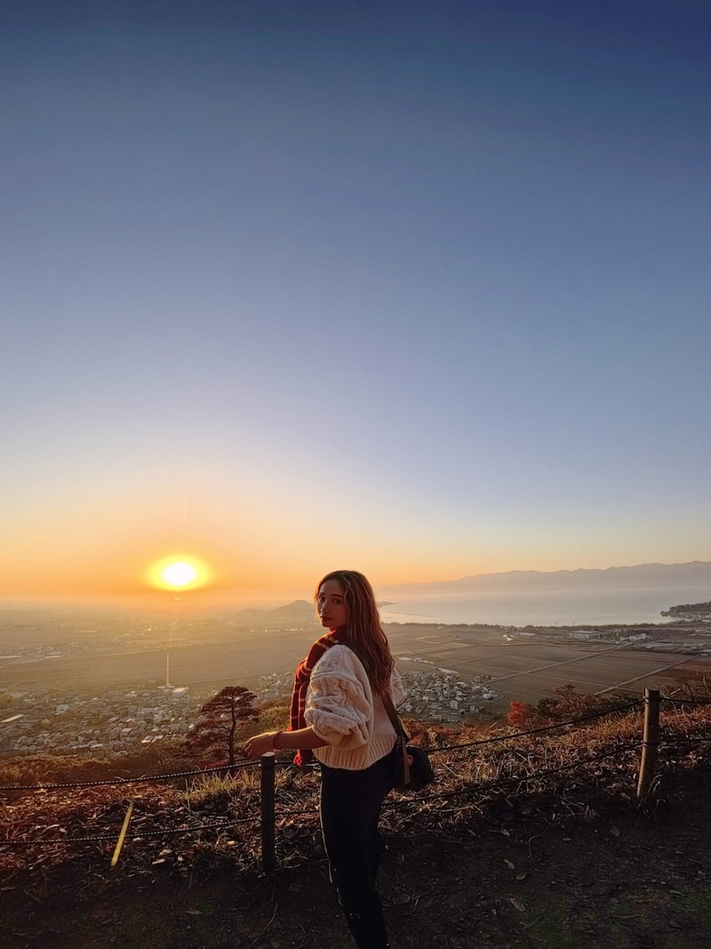 山頂につくと、ちょうど夕日が沈む瞬間で、琵琶湖の向こうに広がるオレンジ色の景色が本当に綺麗すぎた!