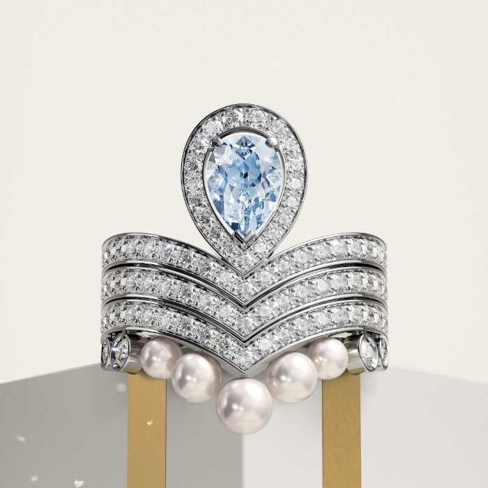 扉を開けた瞬間に姿を現すジュエリーはどれも息をのむ美しさで、優雅さと可憐さを併せ持ったタイムレスなデザインが特徴。