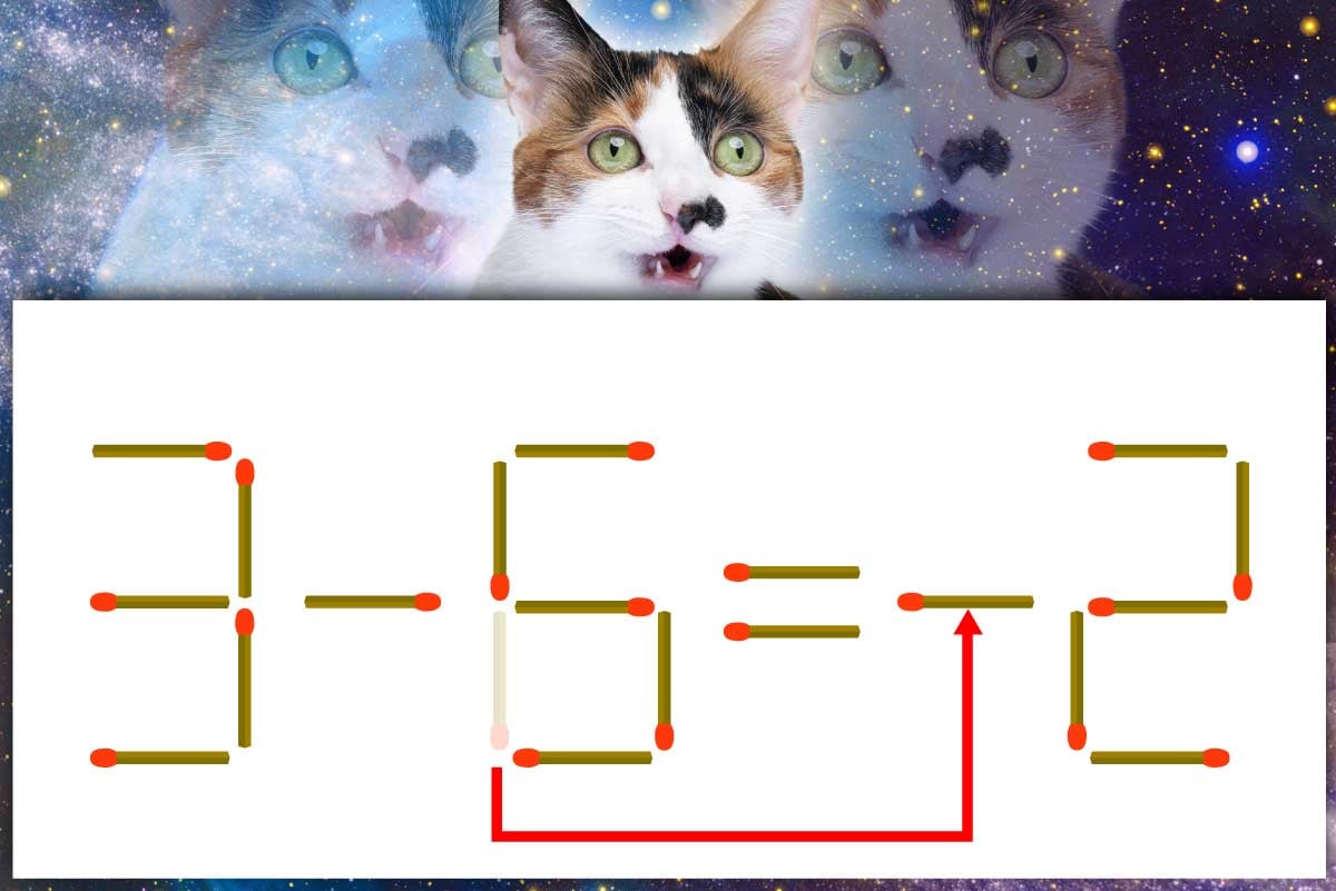 【問題】マッチ棒を1本動かして式を正しくしてください。