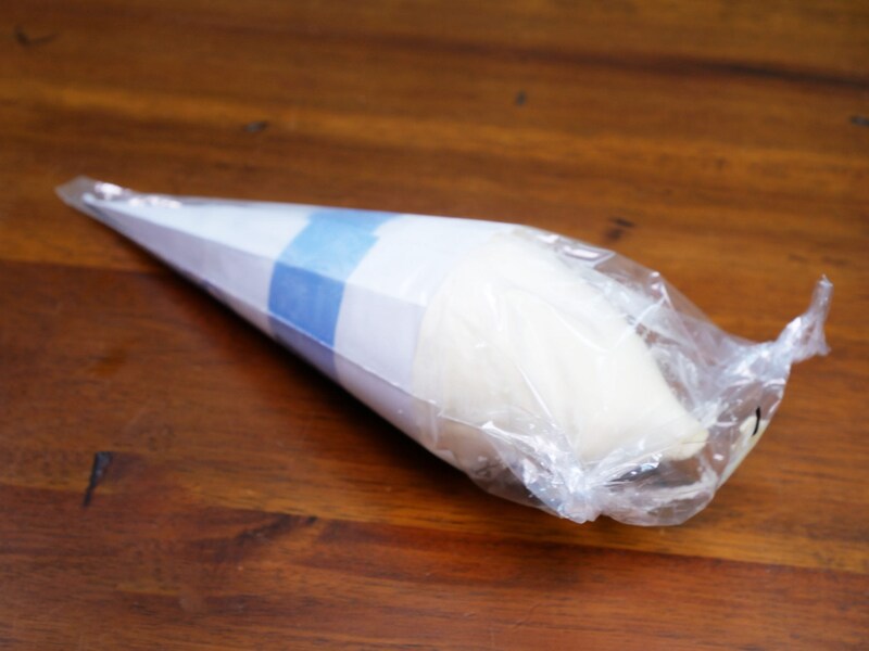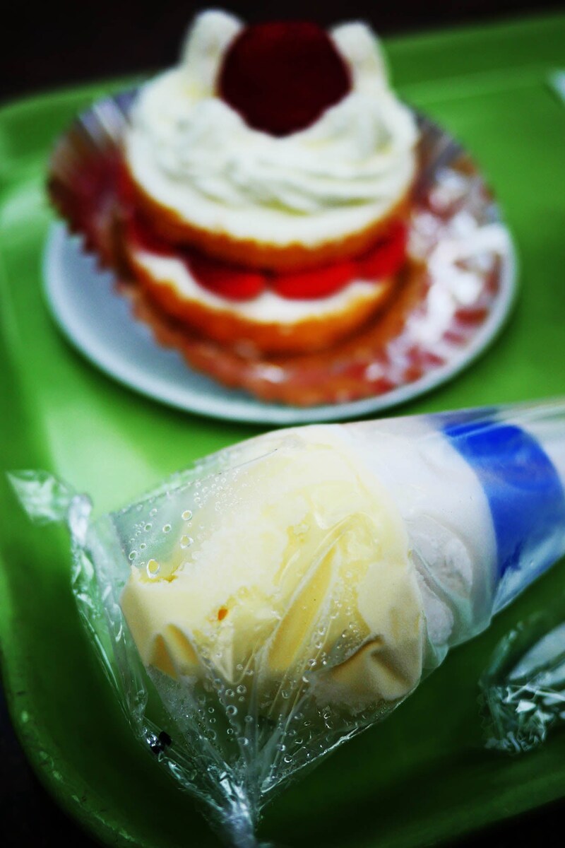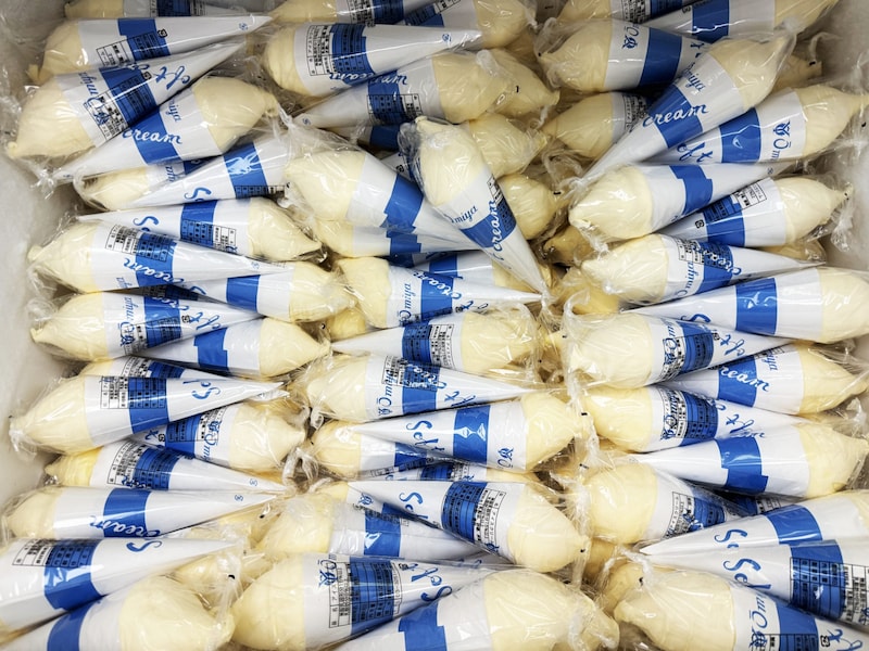 紙袋を開封すると、溶けないように包装されたソフトクリームが入っています。