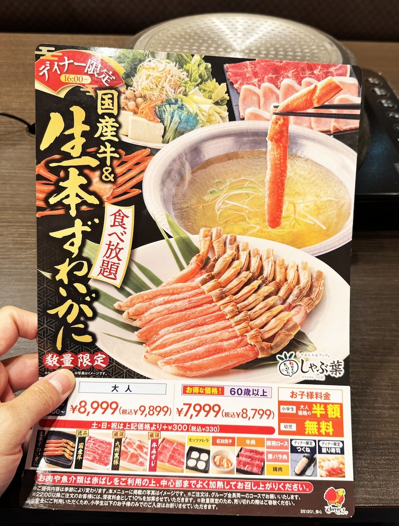 そんなしゃぶ葉が、突如として開催した夢のようなフェスティバル! それが、生本ずわいがに食べ放題! 蟹が少しだけ食べられるプランじゃあない。蟹を! 好きなだけ! 徹底的に! 食べまくれるのである! 時間内無制限ッ!