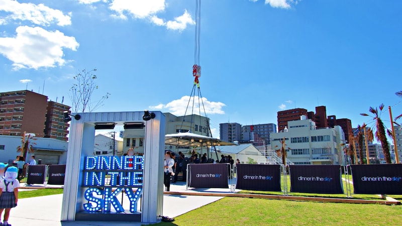 Osaka Metro千日前線「阿波座駅」から約10分。歩いていると空高く伸びたクレーンが見えてきます。その迫力に思わず緊張……。モニュメント前で記念撮影をすませ、受付後はいよいよ搭乗へ!