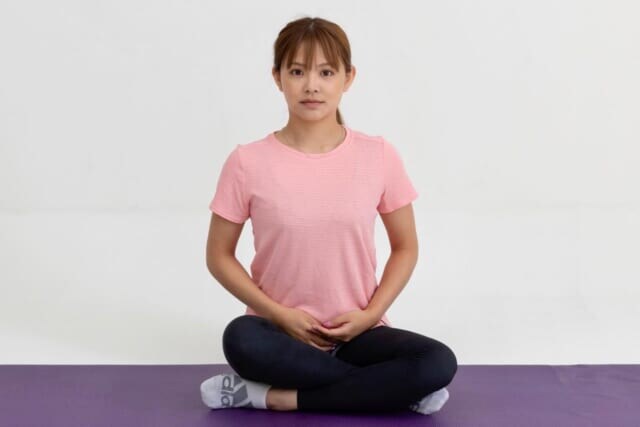 (1)床に座って、両脚を交差させるように組む