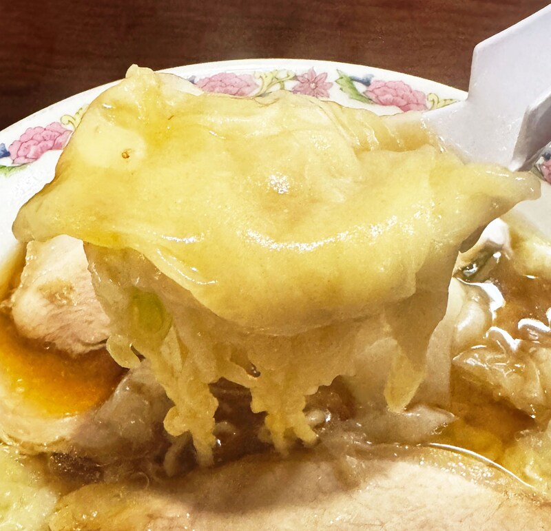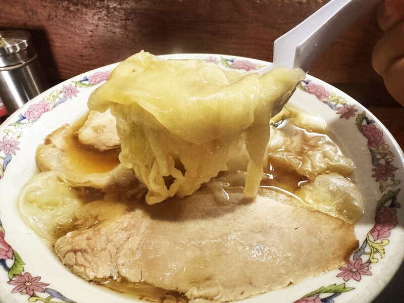 そのスープの良さは、ワンタンと麺にも寄与しています。ワンタンは、まるで生命体のようなフワッとした状態でスープの海に浮かんでいて、レンゲにのせてすするように食べれば、これもまた、ほどよい塩味と繊細な旨味が、ワンタンを至高の存在へといざないます。