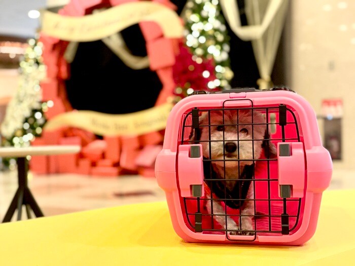 チェックインは、当日の14:00からスタート。ワンちゃんはペットキャリーにて同伴可能です。クリスマスムード漂う華やかなツリーや、フォトスポットも登場。季節を感じる飾りつけに心が躍ります。