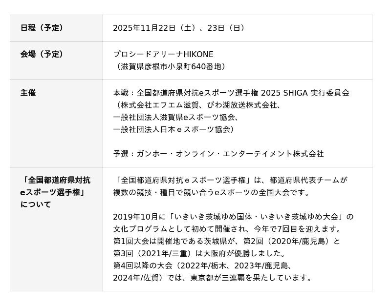 「全国都道府県対抗eスポーツ選手権 2025 SHIGA」概要