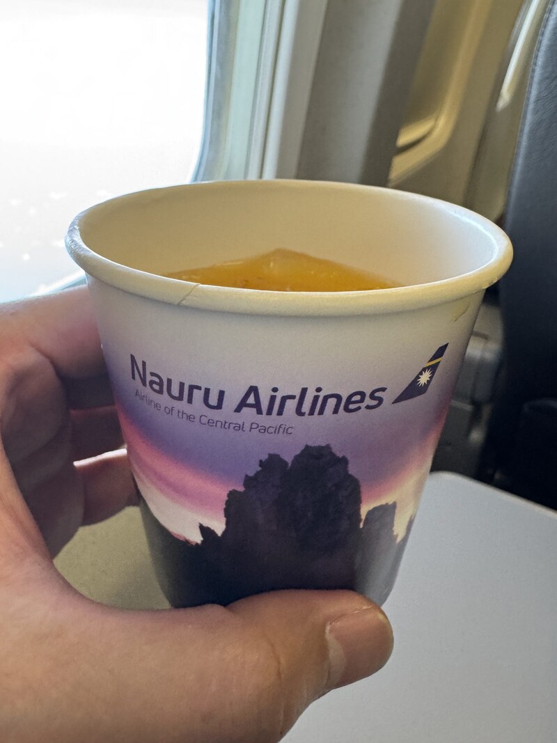 ドリンクのカップには「ナウルエアライン」と書かれていて、レア度が高いです。