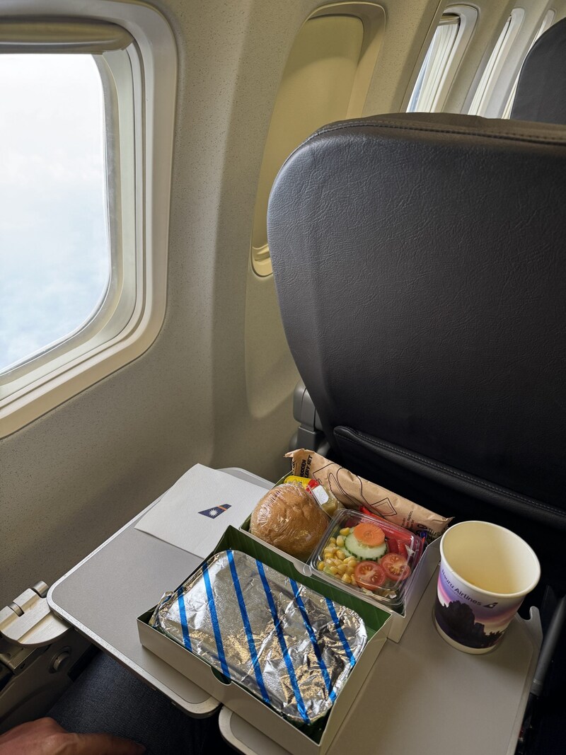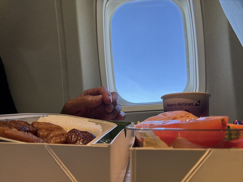 機内食を食べながら空を眺め、ナウルの出来事を思い出す。
