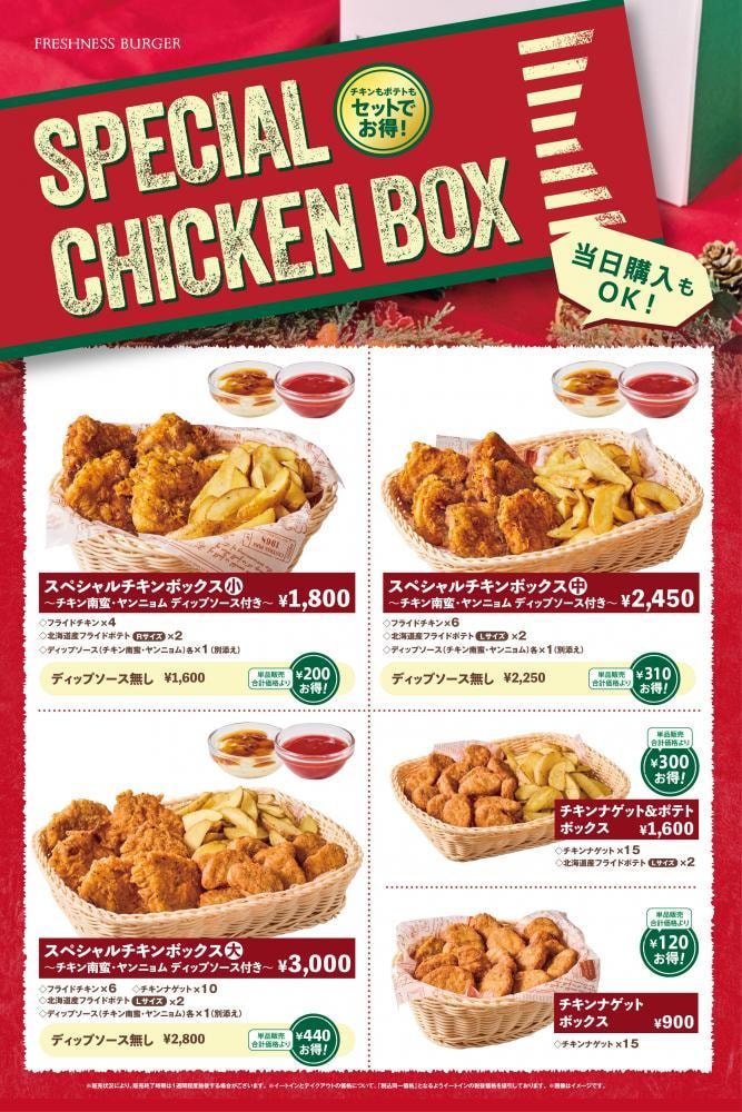 フレッシュネスで毎年大人気のスペシャルチキンボックス。