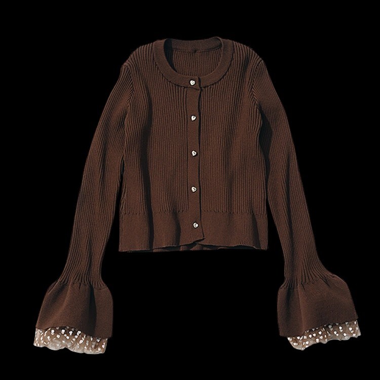 そで口からのぞく、チュールデザインとハート型のボタンなど細部のデザインが超キュート。美なボディラインをつくれるシルエットで細見え効果も◎。