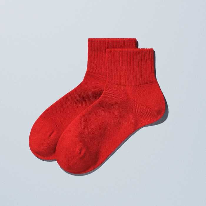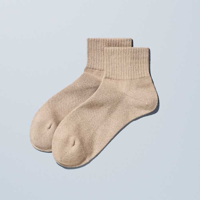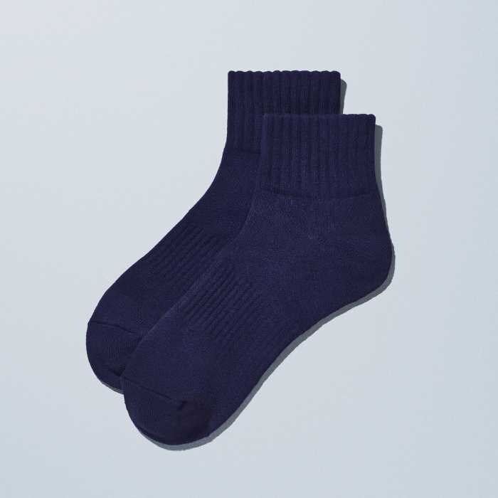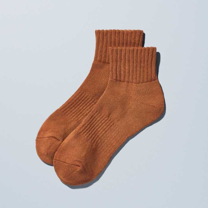 紳士ショートソックス(390円・税込429円)はネイビー・テラコッタの2色、25cm-28cm展開。