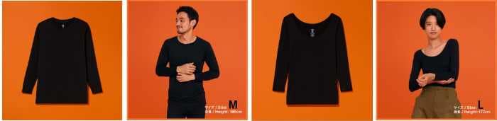 紳士クルーネック/婦人ラウンドネック(長袖)(1,173円・税込1,290円)も同じく吸湿発熱素材を採用し、くろのM/L展開で数量限定です。