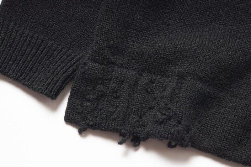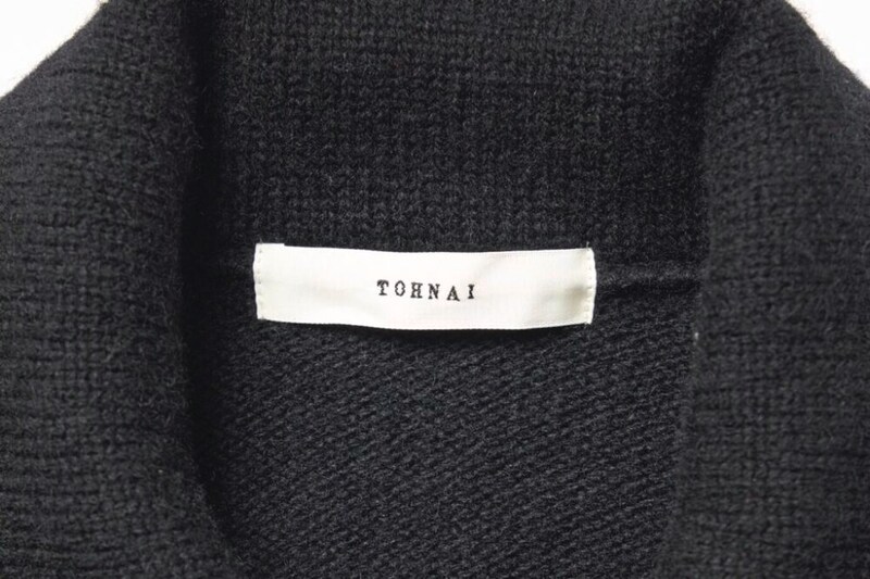 2022年、わずか1型のコートからスタートした「TOHNAI」は、素材と真摯に向き合うことを軸にものづくりを行うブランドである。糸の選定から生地の開発に至るまでデザイナー自らの手の届く範囲で行い、素材そのものが持つ魅力を最大限に引き出すことを目指している。襟付きのボタンカーディガンは黒のシンプルなボディにほつれや目落ちのディテールを施し、手編みのような温もりを感じさせる1着。5万2800円(トーナイ info@tohnai.jp)