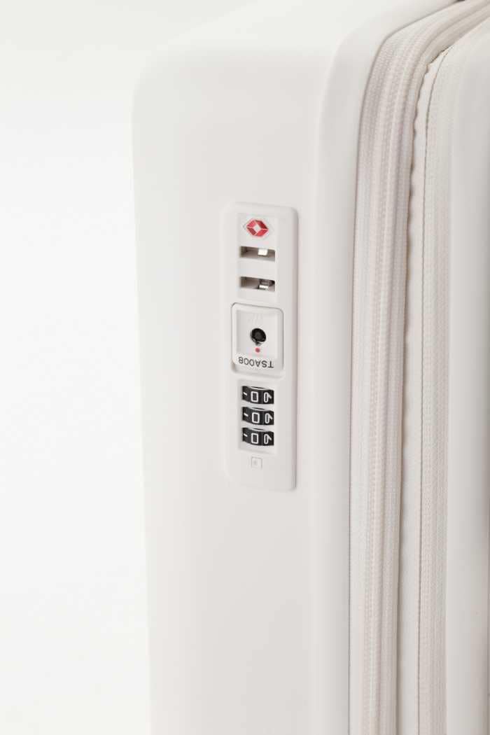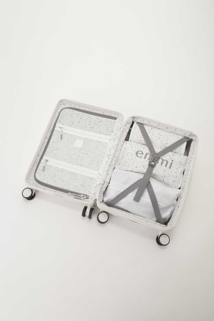 今回のコラボで誕生したスーツケースは、emmiのコンセプト“クリアモード”を体現するようなマットホワイトのシェルボディが特徴。