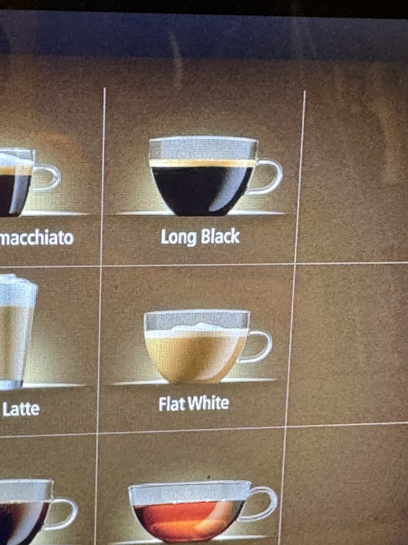 オーストラリアのスターバックスは、メニューにロングブラックはありませんが、店員さんに「ロングブラックをください」と伝えれば、アメリカーノの派生として(?)対応してくれます。メニューにないのに対応してくれる。つまり、それほどオーストラリアでは定番のコーヒーなのでしょうね。