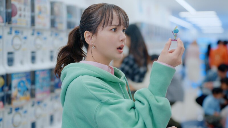 新CMでは、カプセルトイマシンの前で500円玉を手に、お目当てのフィギュアを狙ってハンドルを回し続ける多部さんの姿が。しかし何度挑戦しても同じフィギュアばかりが出てきて、残念そうな表情を浮かべます。