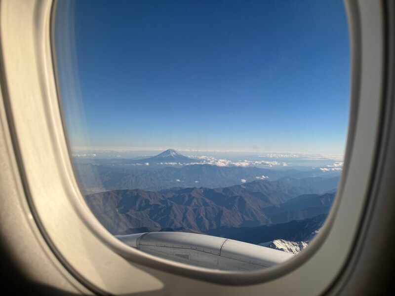 次に向かうは琵琶湖、アルプス山脈の上空を通って富士山へ。普段、初日の出フライトで必ず行くというお墨つきの絶景ポイントも通り、雪化粧の山々に囲まれた雲一つかかっていない富士山が見られ、あまりの美しさに皆が息をのんだ。
