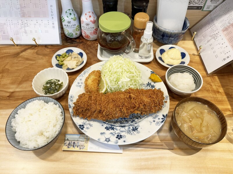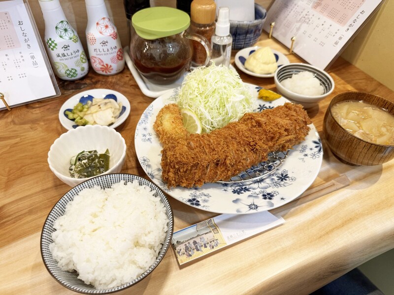 ということで、今回オーダーしたとんかつは、ぼーひれ350グラムサイズ(税込4500円)、ライス普通盛り(税込300円)、みそ汁(税込200円)、大根おろし(税込100円)、マヨネーズ(税込100円)。わさびはオーダーし忘れた。