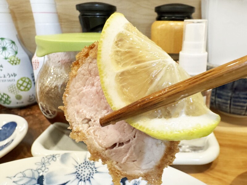 ちなみに「吉平」のとんかつは、スライスのレモンで包むようにして食べても絶品。ぼーひれでも絶品。少量の塩をかけてからレモンで包んでも素晴らしいおいしさとなる。引き立つ酸味が、衣の香ばしさと肉の旨味を際立たせるのである。