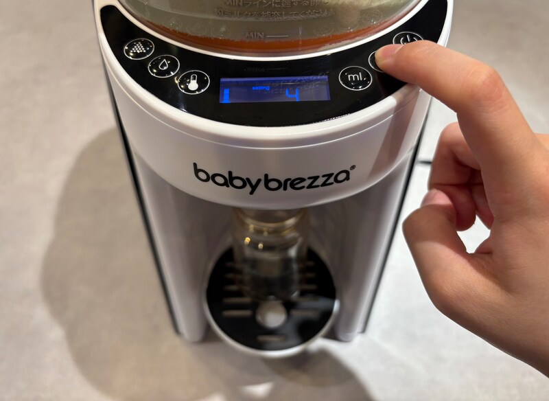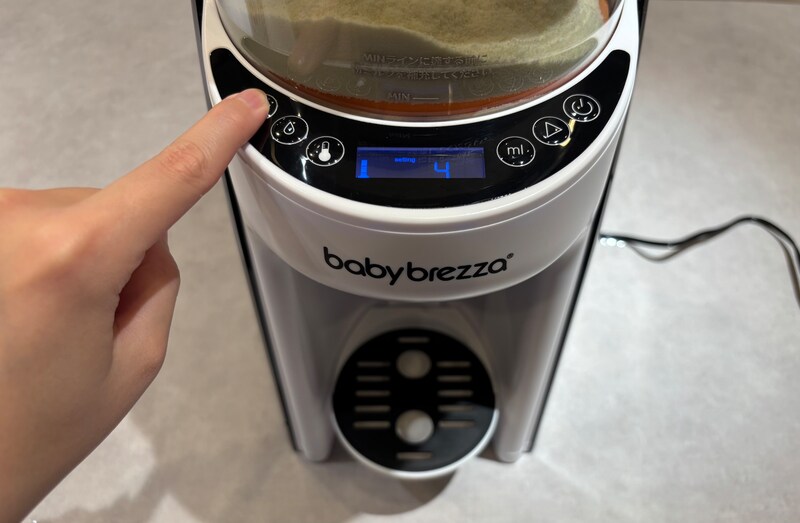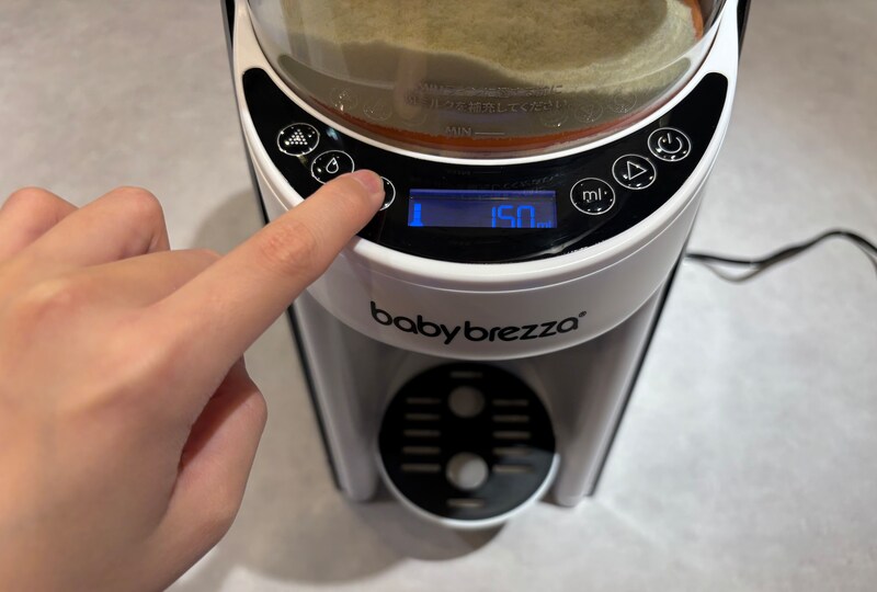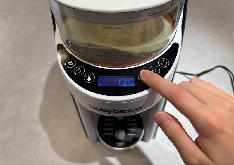 電源を入れたら、まずは水量を選択。60mlから300mlの間から30ml間隔で赤ちゃんに合わせた水量を選ぶことができる。