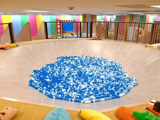 当施設には、広大なキッズパーク「nico ground」を併設しており、巨大なアリ地獄、木製ジャングルジムやボールプールなどを展開。お子様が元気いっぱいに遊べる環境を提供しています。また、絵本やおままごとセット、ベビー向けボールプールなどを設置したベビーコーナーもご用意しており、小さなお子様も安心してお楽しみいただけます。