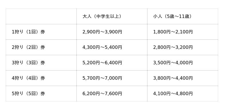 例)1狩り券をご購入の方は、合計で2狩り分お楽しみいただけます。