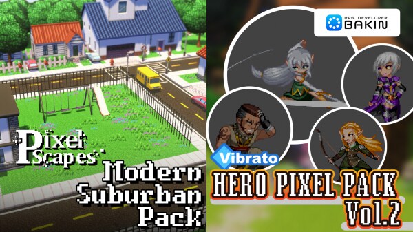 本日、エルフ・格闘家の高解像度ドット絵キャラクター素材集『Vibrato HERO PIXEL PACK Vol.2』と、現代的な郊外の街並みを再現できる3Dモデルパック『PixelScapes Modern Suburban Pack』を発売しました。また、本日より、2025年10月8日(水)午前2時まで10%OFFのローンチ割引を実施します。この機会をお見逃しなく!