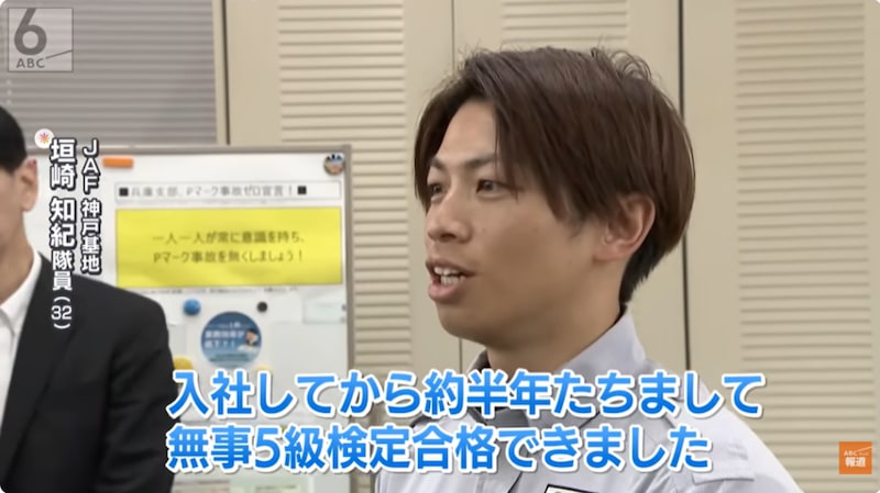 神戸市灘区にあるJAF神戸基地。キャリア5カ月の垣崎知紀隊員(32)は、消防隊員からJAF隊員になった異色の経歴の持ち主。社内の資格に合格し、10月にひとり立ちしたばかりです。