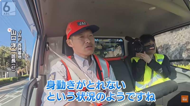 さまざまな車のトラブルに急行するJAF隊員の活躍は、11月26日(水)放送の『newsおかえり』(ABCテレビ 毎週月曜〜金曜午後3:40〜)で紹介しました。