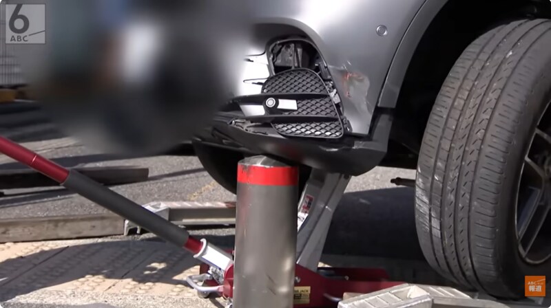 まずはジャッキで車体を持ち上げる山口隊員。汗だくになりながら慎重に車を動かし、ついに救出に成功しました。しかし、ポールに突っ込んだ衝撃で車が故障しており、自走は難しいと判断。ディーラーに搬送することになりました。