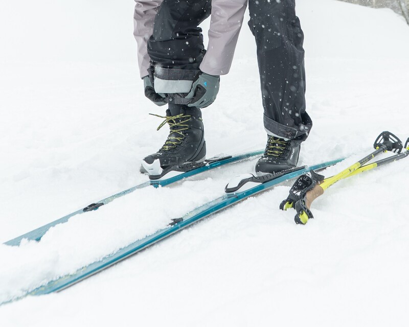 ウェアは、気候やその日の工程によって適切な選択が必要だ。冬の野外活動では汗をかいても肌に残すことは避けたい。天候や気温にあわせたレイヤリングはもちろんのこと、ヒールフリーのビンディングに慣れない人は、転倒も視野に入れてビブパンツの着用をおすすめしたい。