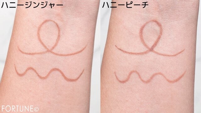 「ハニージンジャー」はニュートラルなブラウンベージュ、「ハニーピーチ」は血色感のあるピンクベージュです。