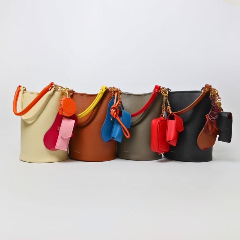 店頭では、小物を収納できる機能性を備えたバッグチャームもスタンバイ。豊富なカラー展開でバッグに新しい表情を与え、色の組み合わせによって自分らしさも表現できます。ポップアップならではの、とっておきのカスタマイズ体験を楽しんで。