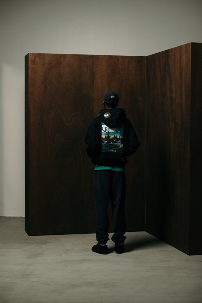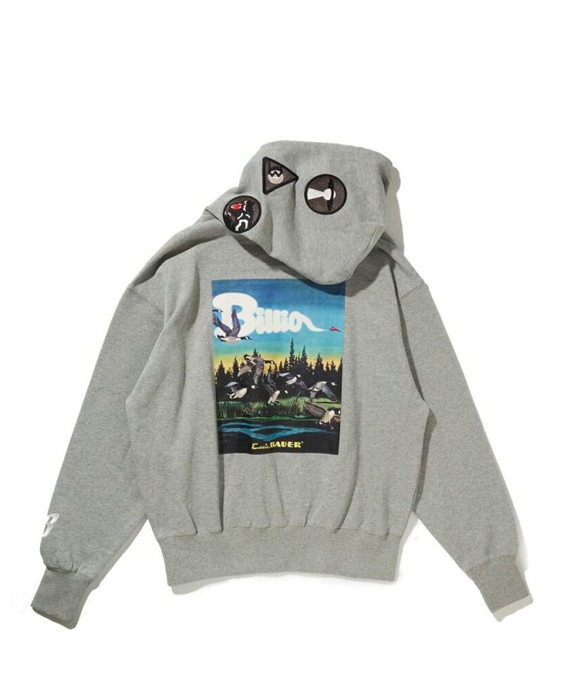 「Eddie Bauer」のアーカイブアイテムをベースに、「BILLIONAIRE BOYS CLUB」ならではのオリジナルワッペンやグースを描いたコラボ限定グラフィックを施し、アウトドアシーンはもちろん、ストリートスタイルにも映える特別仕様に仕上げている。