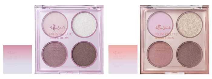 数量限定で発売される「エテュセカラーパレットスペシャルエディション<アイシャドウ>税込2,310円(全2色)」は、ベース・彩り・影色・透明感爆盛りラメ*の4質感を組み合わせたスペシャル仕様。