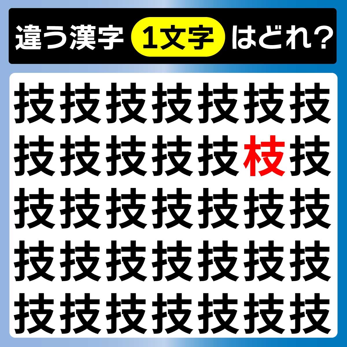 毎日配信中「毎日脳トレ」の時間です! 本日のクイズは「漢字のまちがい探し」に挑戦♪ 同じ漢字が並んでいるように見えますが、実は1つだけ違う漢字が……。よ~く探してみてください!